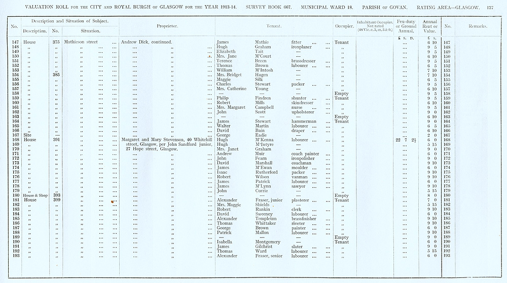 Glasgow Valuation Roll VR 1913-14, Ward 18, p137