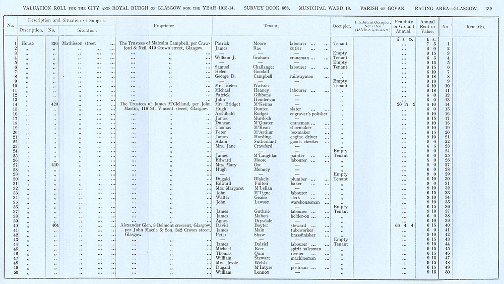 Glasgow Valuation Roll VR 1913-14, Ward 18, p139