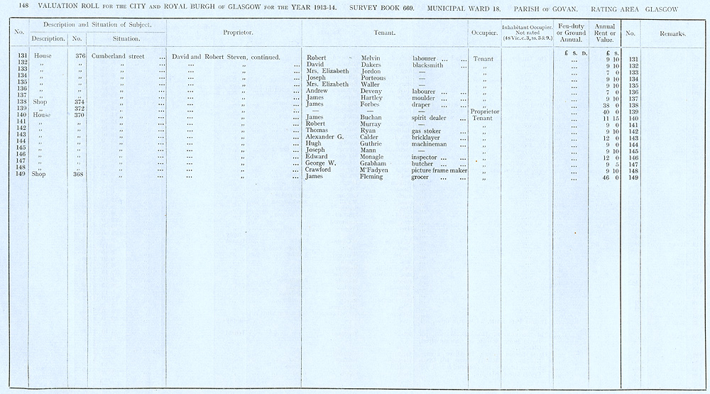 Glasgow Valuation Roll VR 1913-14, Ward 18, p148