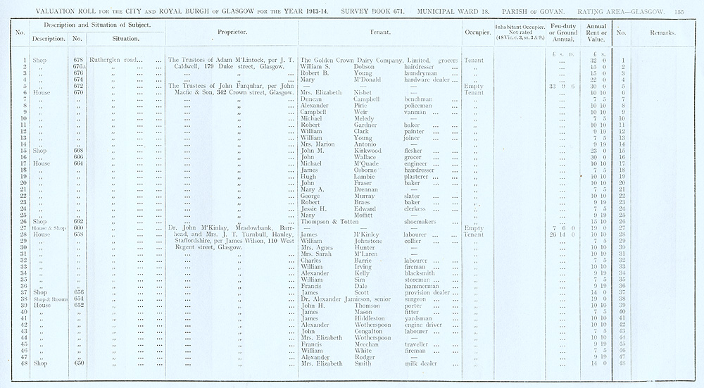 Glasgow Valuation Roll VR 1913-14, Ward 18, p155