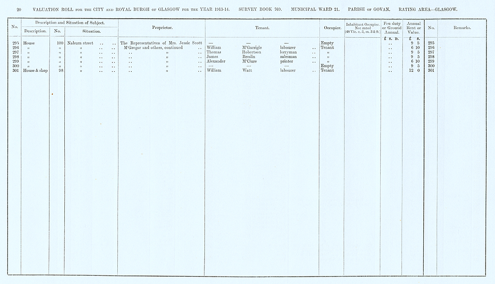 Glasgow Valuation Roll VR 1913-14, Ward 21, p020