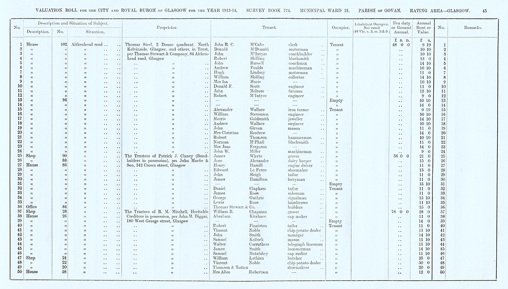 Glasgow Valuation Roll VR 1913-14, Ward 21, p045