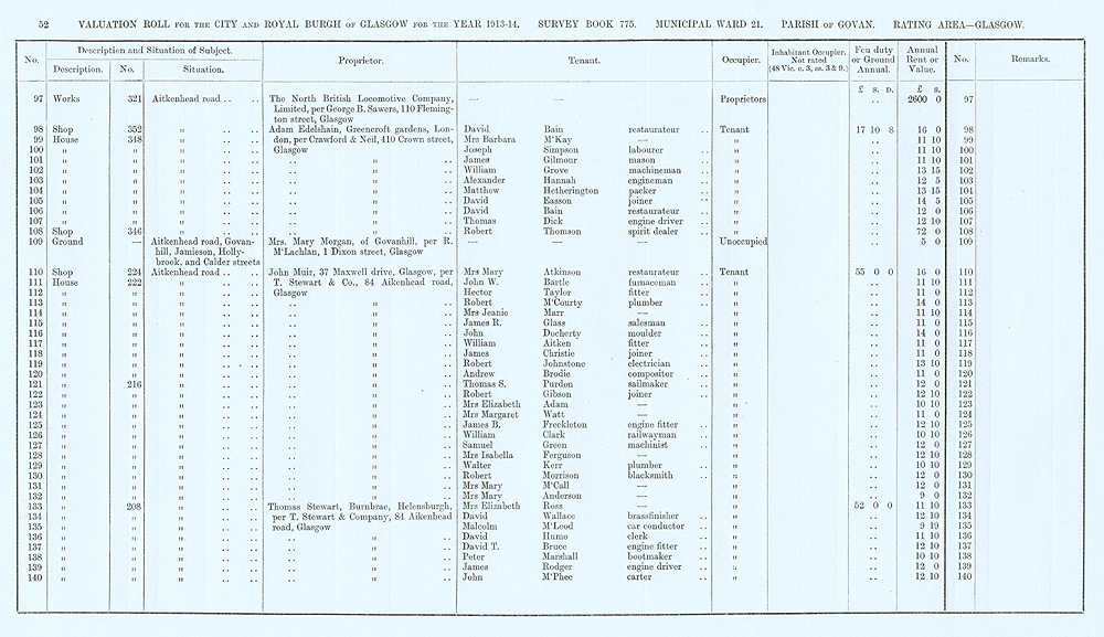 Glasgow Valuation Roll VR 1913-14, Ward 21, p052