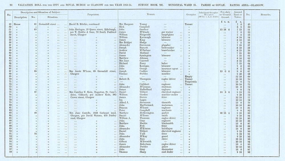 Glasgow Valuation Roll VR 1913-14, Ward 21, p090