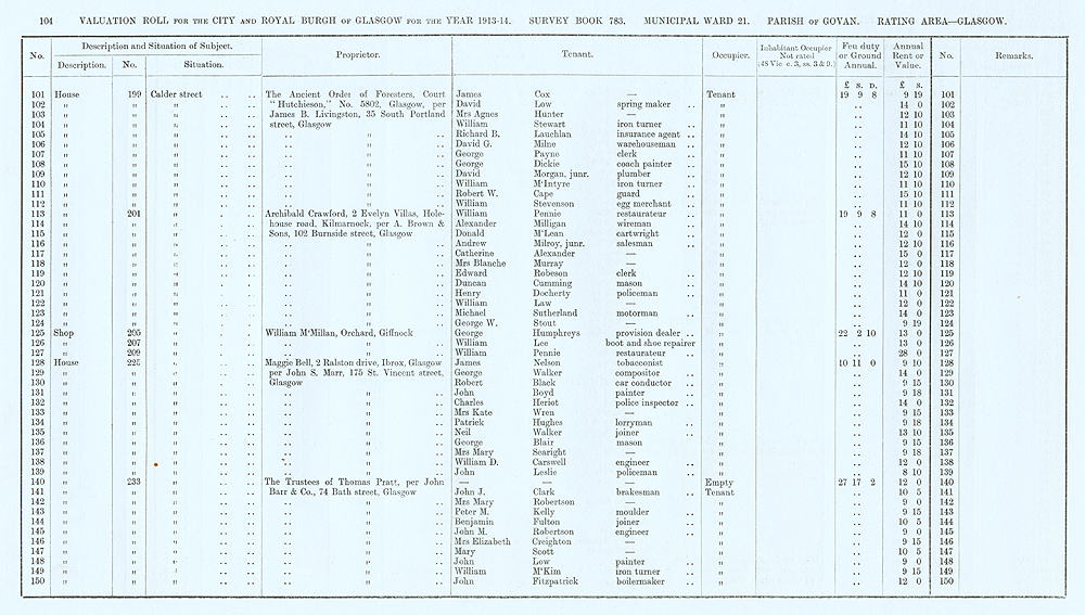 Glasgow Valuation Roll VR 1913-14, Ward 21, p104