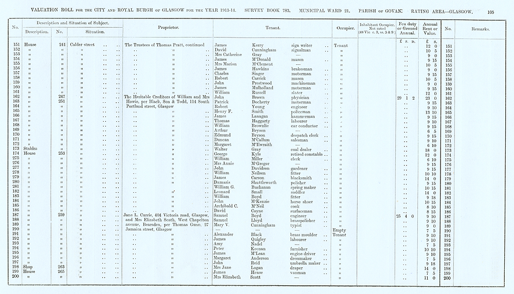 Glasgow Valuation Roll VR 1913-14, Ward 21, p105