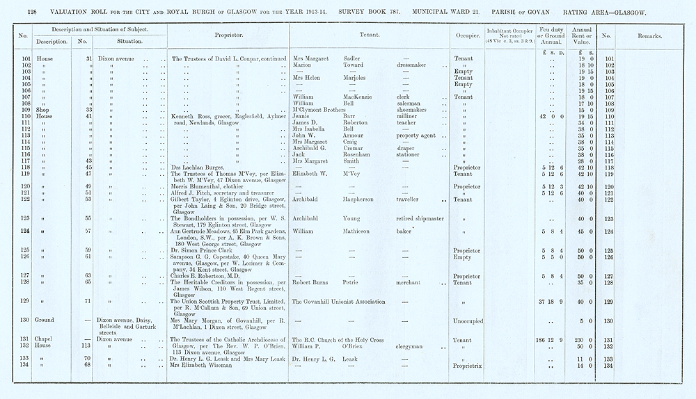 Glasgow Valuation Roll VR 1913-14, Ward 21, p128