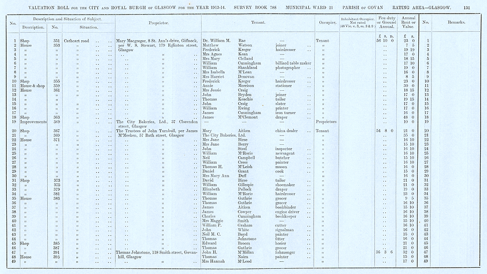 Glasgow Valuation Roll VR 1913-14, Ward 21, p131