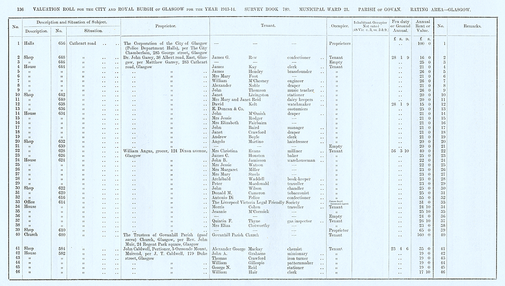 Glasgow Valuation Roll VR 1913-14, Ward 21, p136