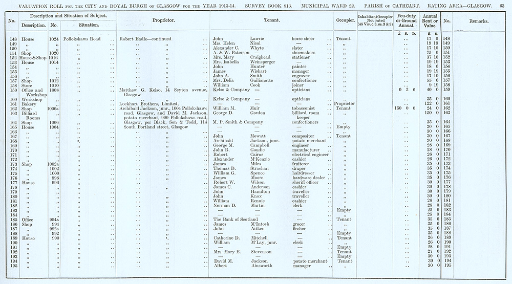 Glasgow Valuation Roll VR 1913-14, Ward 22, p063