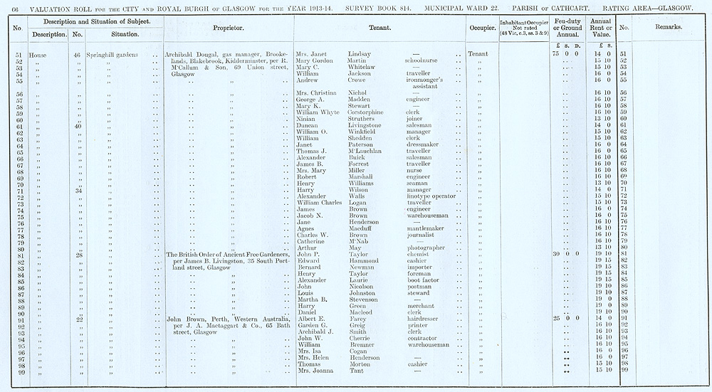 Glasgow Valuation Roll VR 1913-14, Ward 22, p066