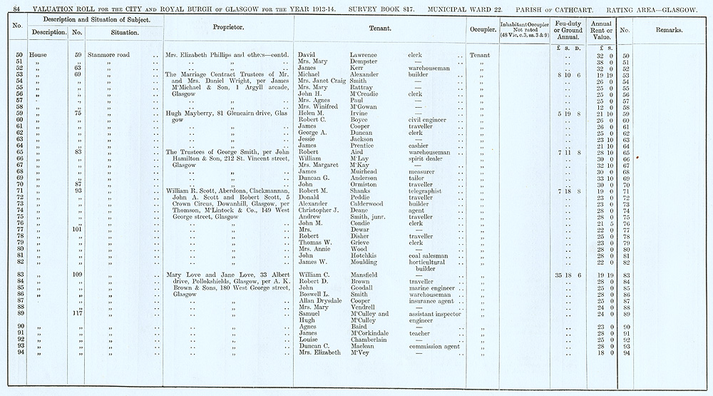 Glasgow Valuation Roll VR 1913-14, Ward 22, p084