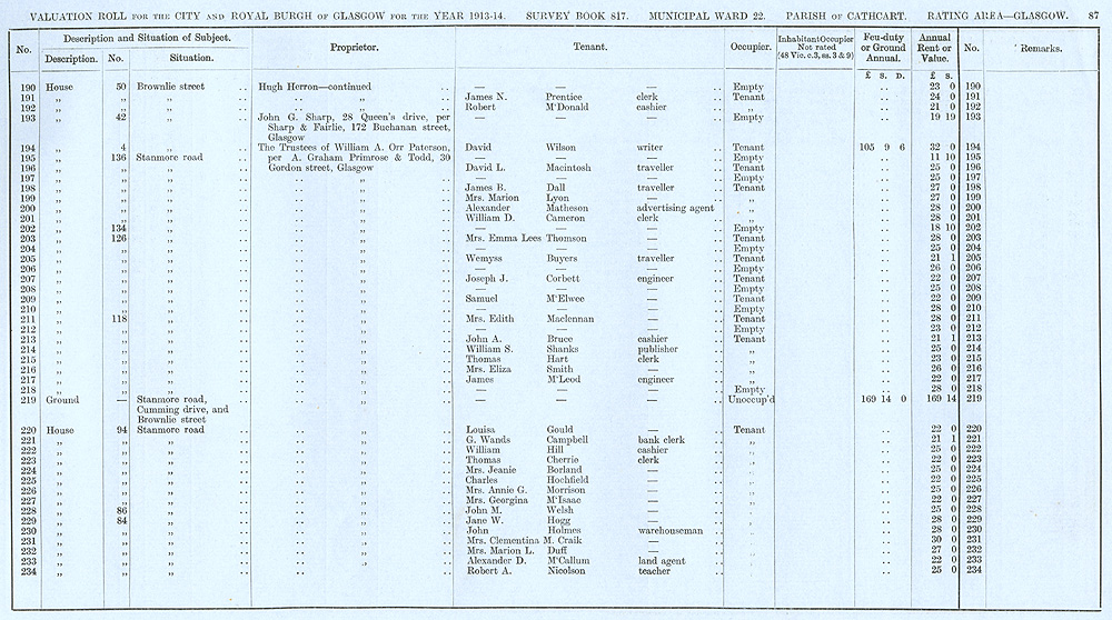 Glasgow Valuation Roll VR 1913-14, Ward 22, p087