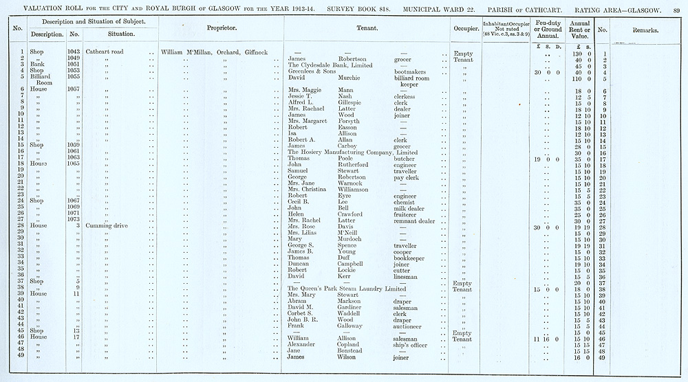 Glasgow Valuation Roll VR 1913-14, Ward 22, p089
