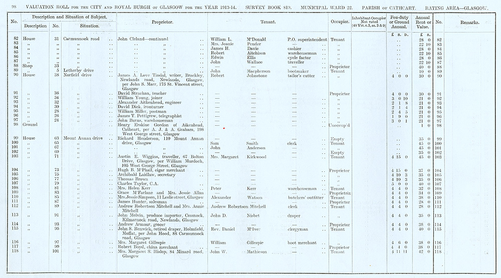 Glasgow Valuation Roll VR 1913-14, Ward 22, p098