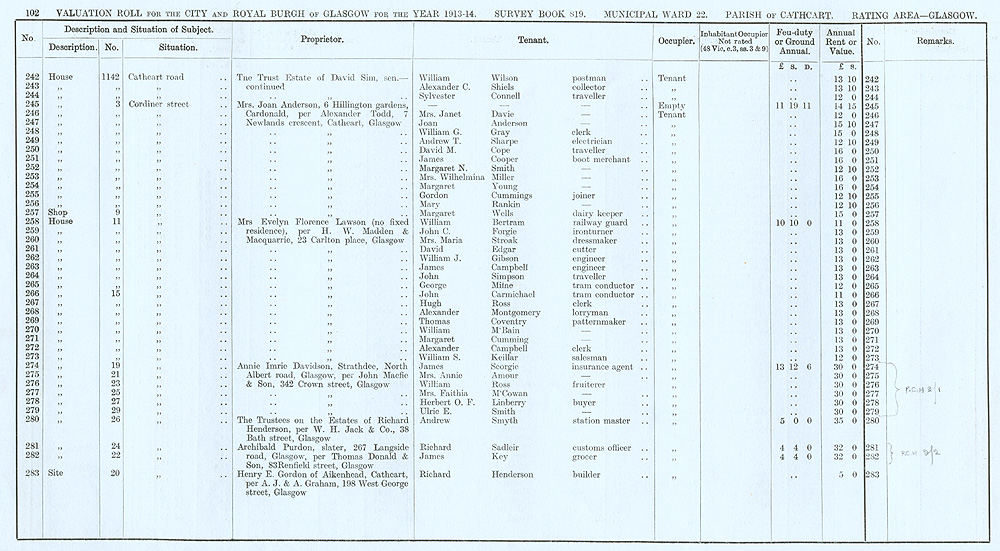 Glasgow Valuation Roll VR 1913-14, Ward 22, p102