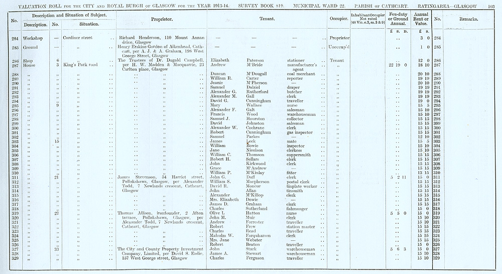 Glasgow Valuation Roll VR 1913-14, Ward 22, p103