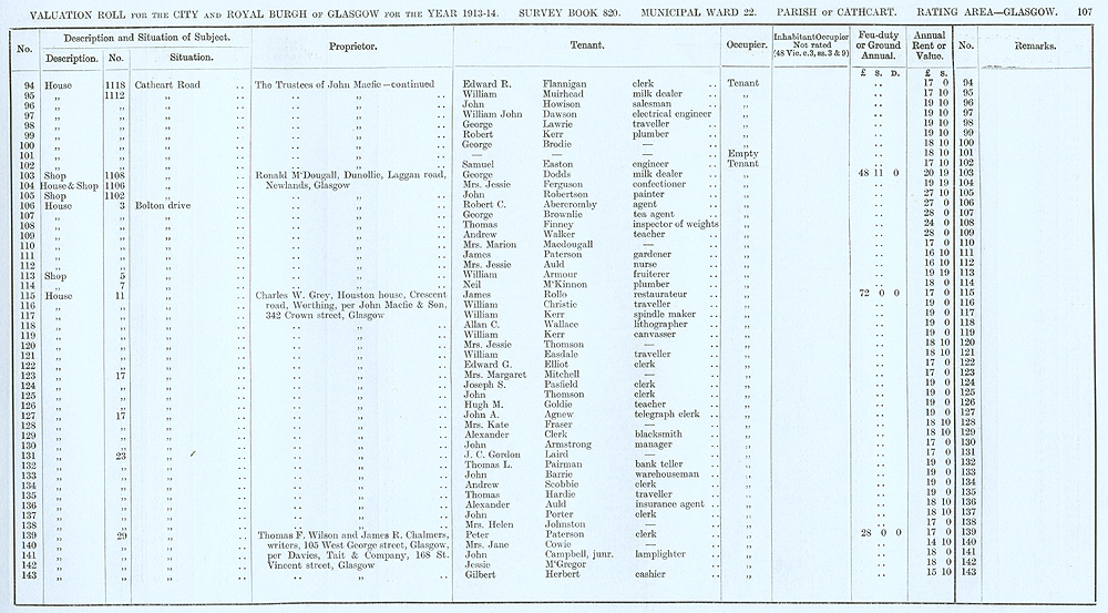 Glasgow Valuation Roll VR 1913-14, Ward 22, p107