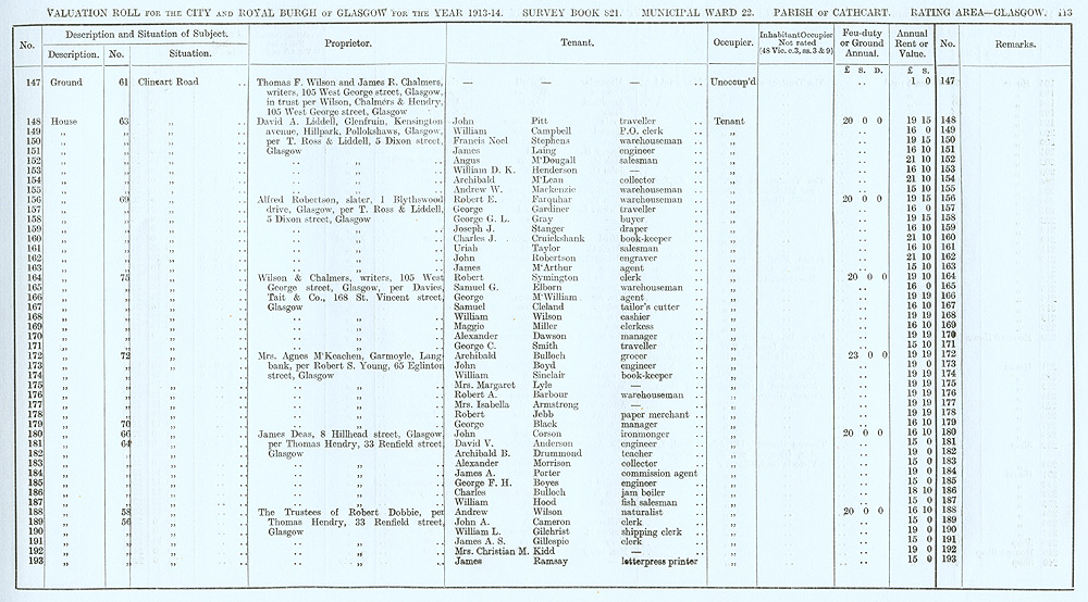 Glasgow Valuation Roll VR 1913-14, Ward 22, p113