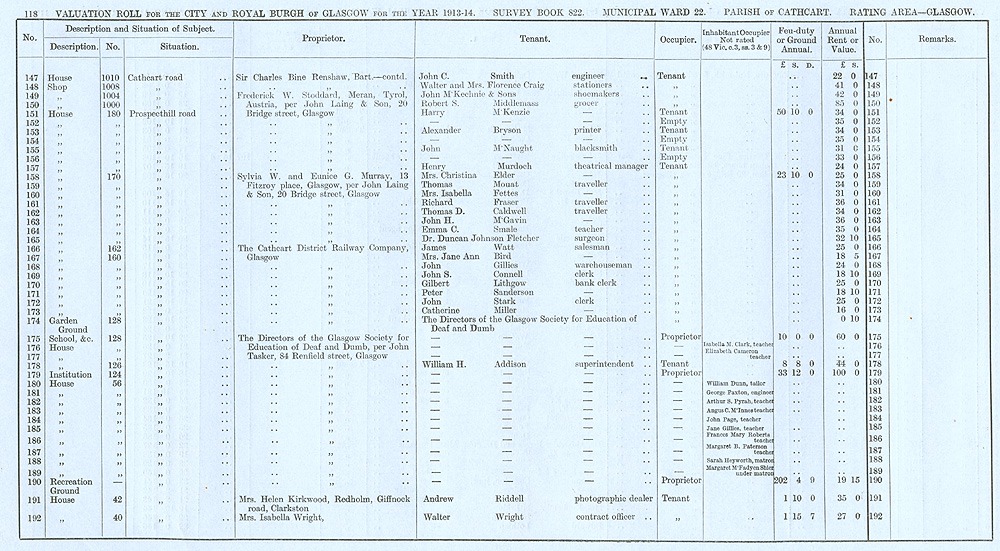 Glasgow Valuation Roll VR 1913-14, Ward 22, p118