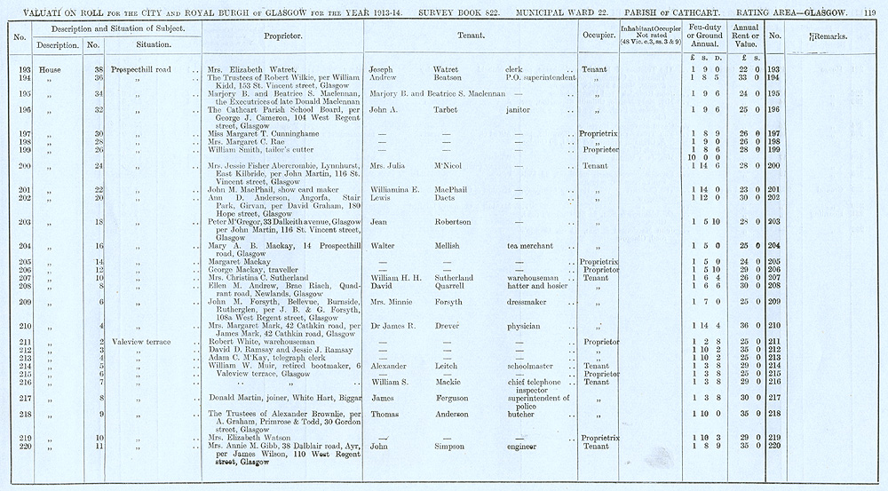 Glasgow Valuation Roll VR 1913-14, Ward 22, p119
