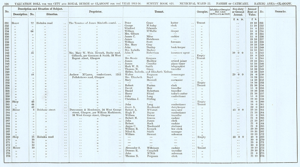 Glasgow Valuation Roll VR 1913-14, Ward 22, p126