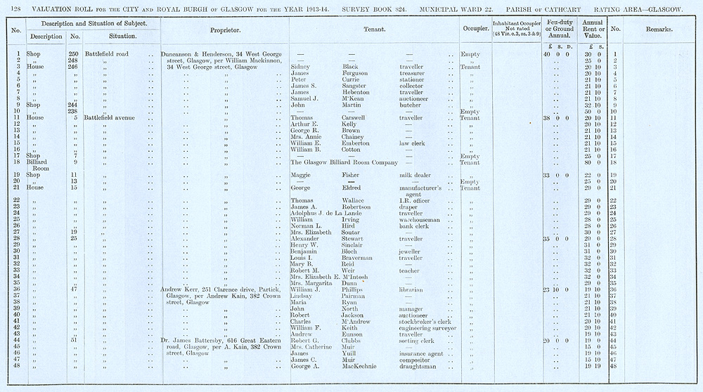 Glasgow Valuation Roll VR 1913-14, Ward 22, p128