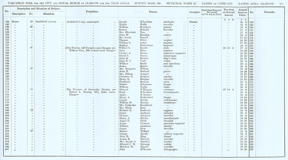 Glasgow Valuation Roll VR 1913-14, Ward 22, p131