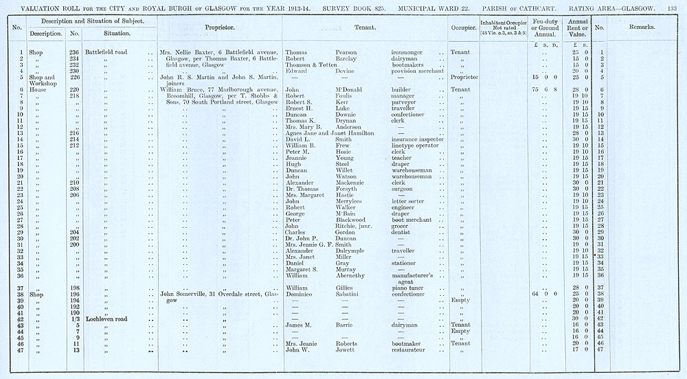 Glasgow Valuation Roll VR 1913-14, Ward 22, p133