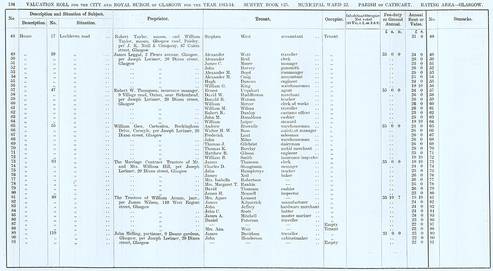 Glasgow Valuation Roll VR 1913-14, Ward 22, p134