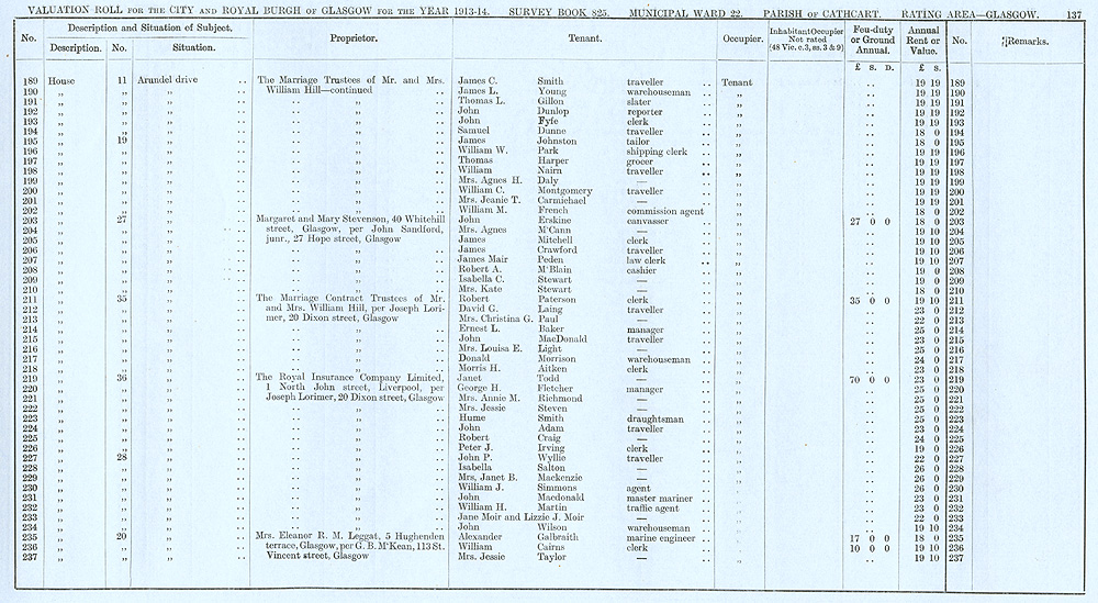 Glasgow Valuation Roll VR 1913-14, Ward 22, p137