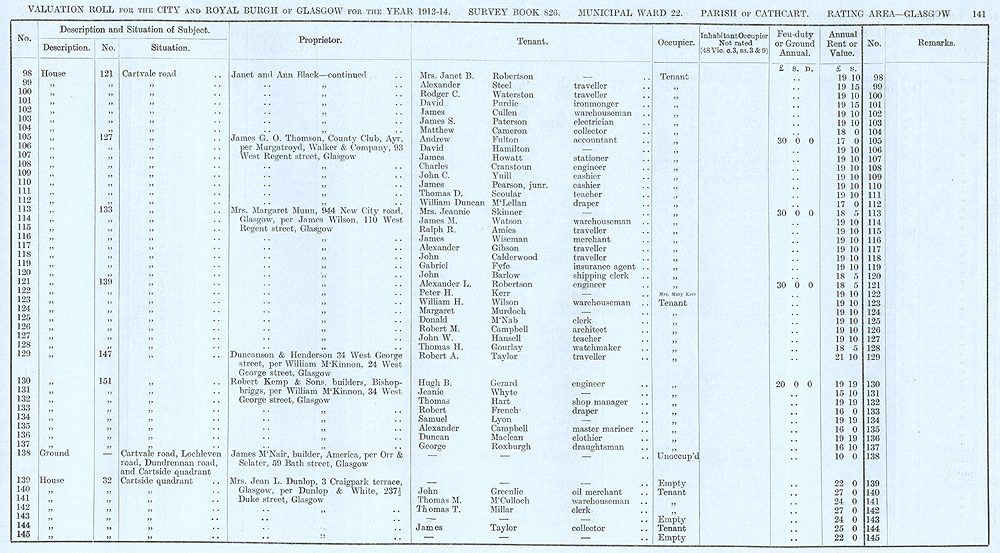 Glasgow Valuation Roll VR 1913-14, Ward 22, p141
