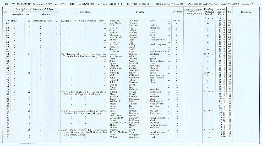 Glasgow Valuation Roll VR 1913-14, Ward 22, p146