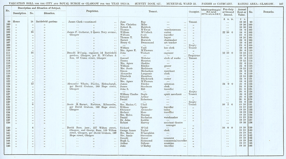 Glasgow Valuation Roll VR 1913-14, Ward 22, p147