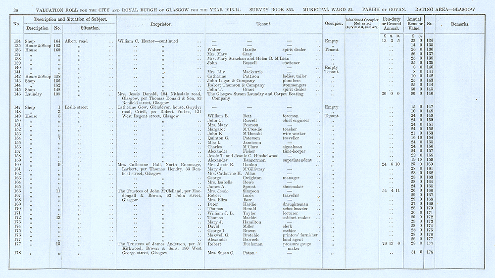 Glasgow Valuation Roll VR 1913-14, Ward 23, p036