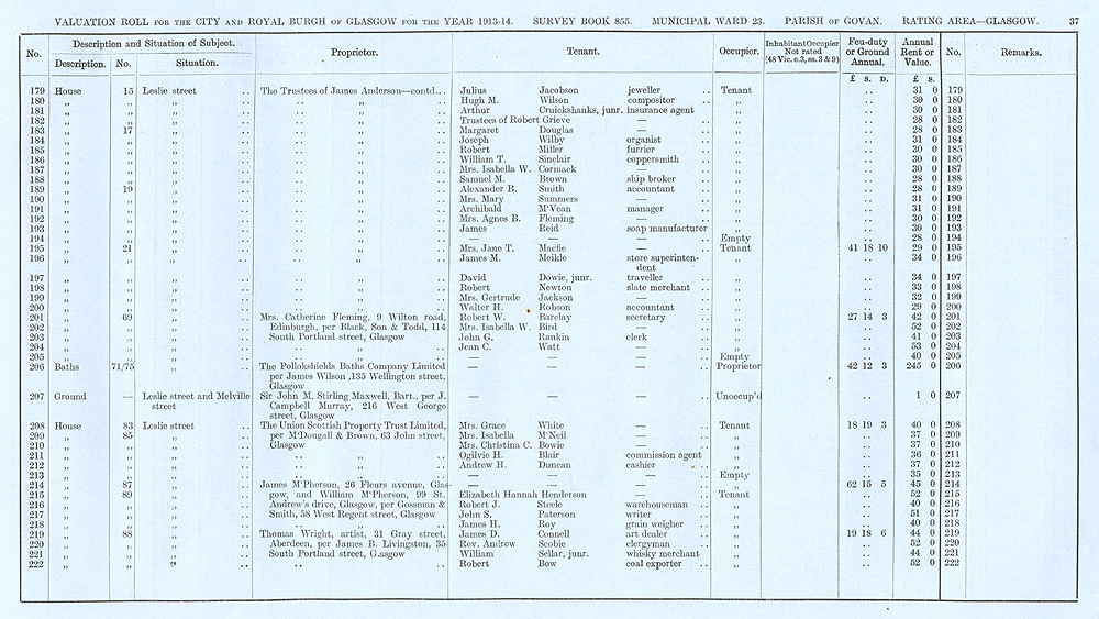Glasgow City Archives, City Assessor's Department, Valuation Rolls