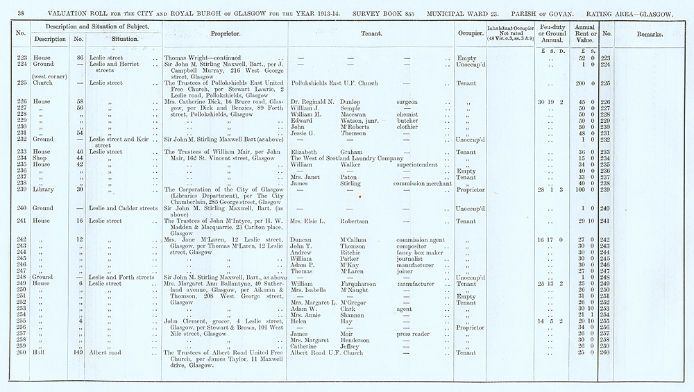 Glasgow Valuation Roll VR 1913-14, Ward 23, p038