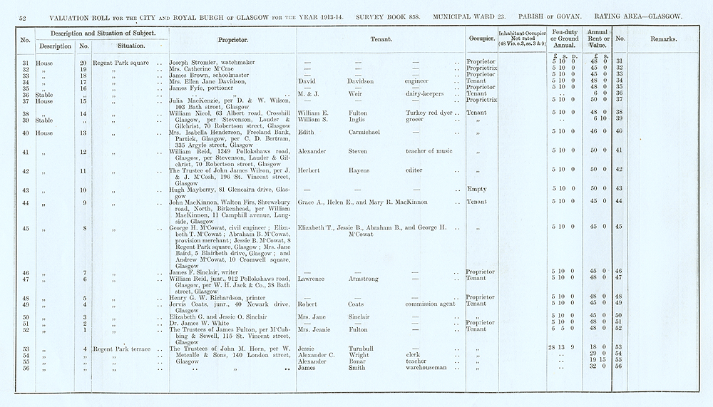 Glasgow Valuation Roll VR 1913-14, Ward 23, p052