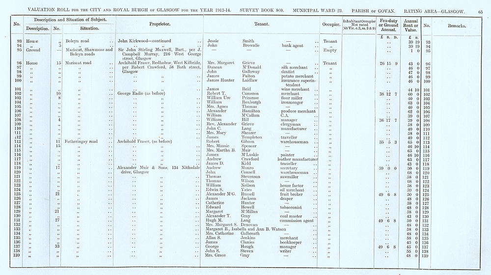 Glasgow Valuation Roll VR 1913-14, Ward 23, p065