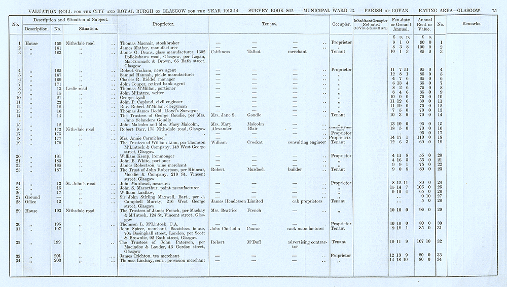 Glasgow Valuation Roll VR 1913-14, Ward 23, p075
