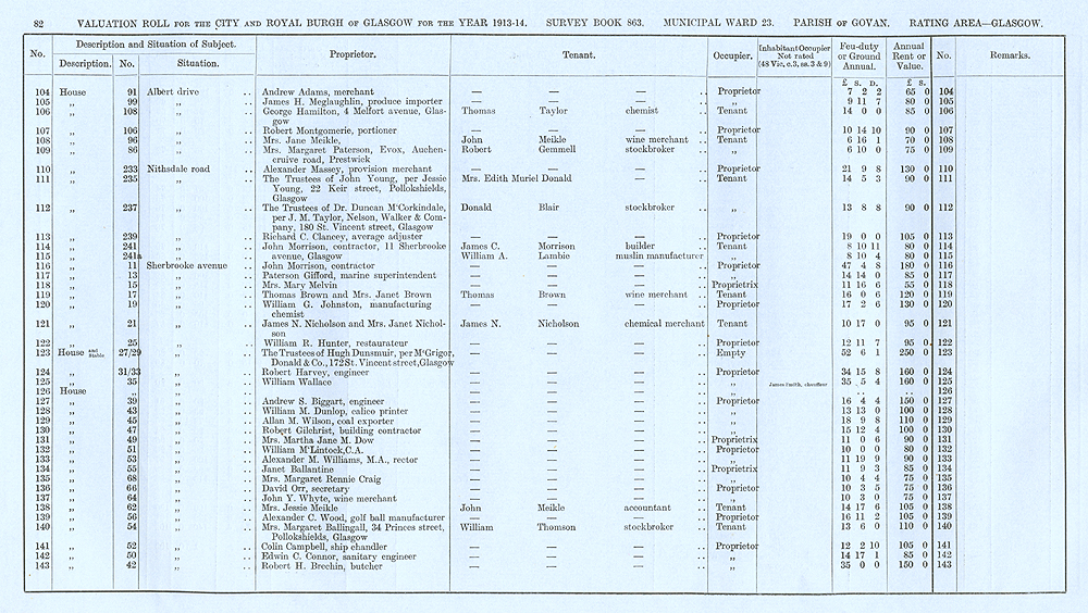 Glasgow Valuation Roll VR 1913-14, Ward 23, p082