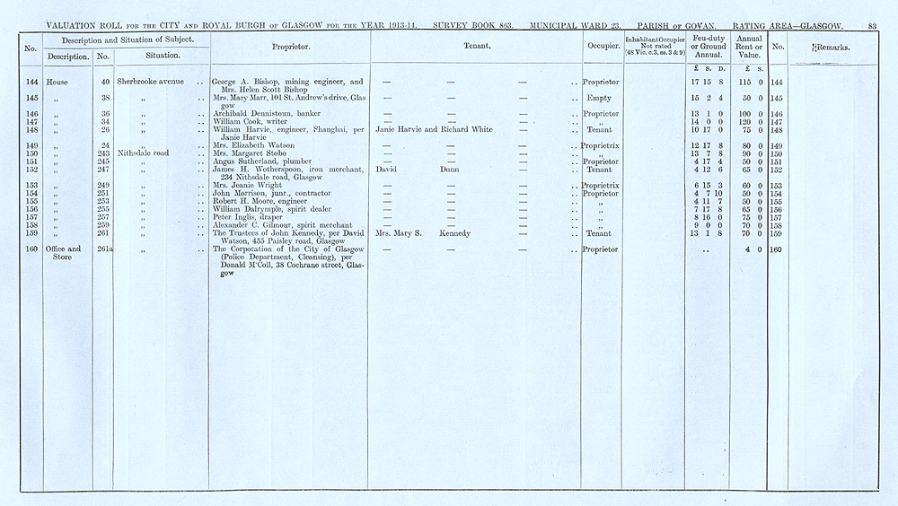 Glasgow Valuation Roll VR 1913-14, Ward 23, p083