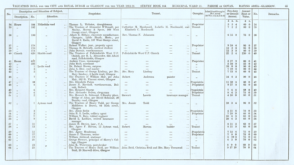 Glasgow Valuation Roll VR 1913-14, Ward 23, p085