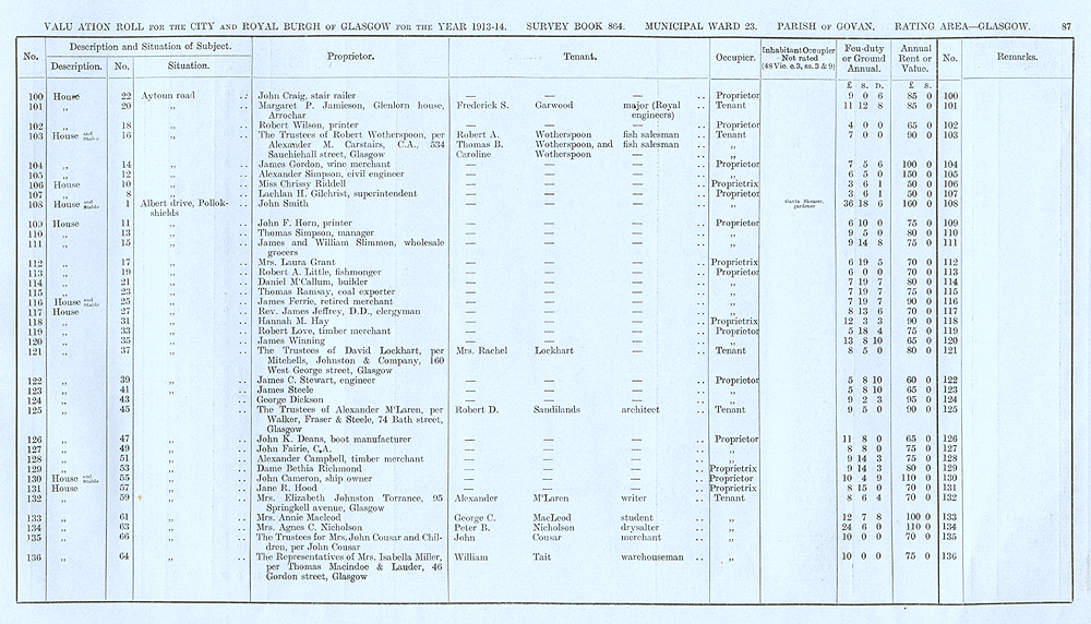 Glasgow Valuation Roll VR 1913-14, Ward 23, p087