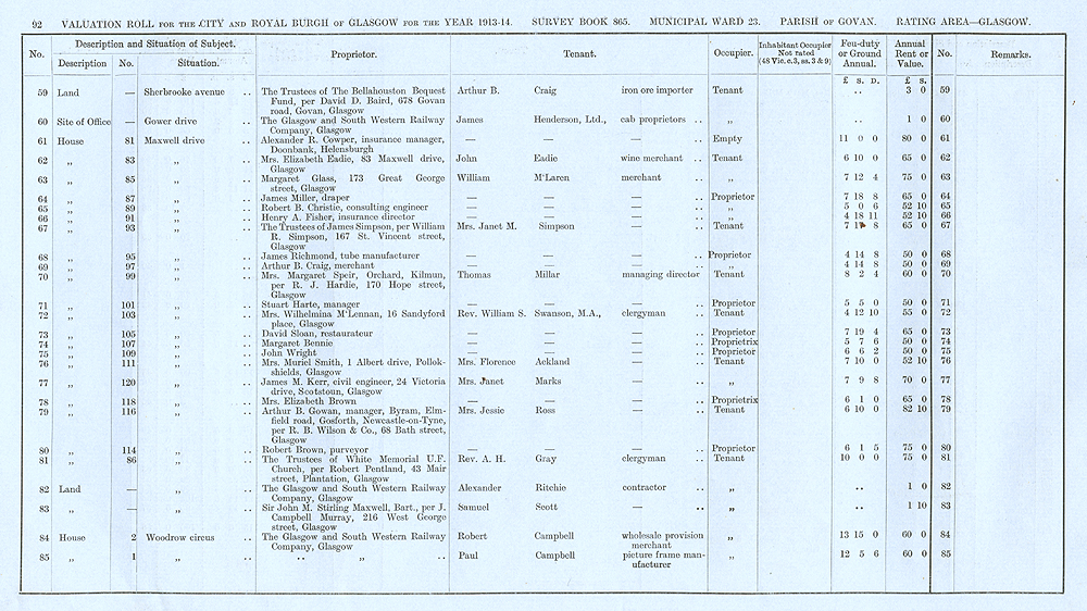 Glasgow Valuation Roll VR 1913-14, Ward 23, p092