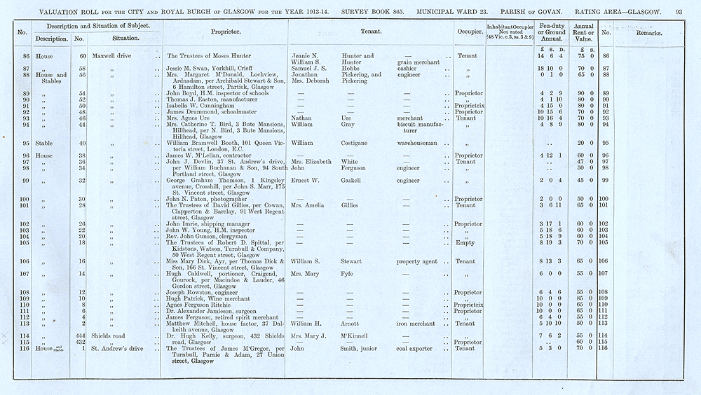 Glasgow Valuation Roll VR 1913-14, Ward 23, p093