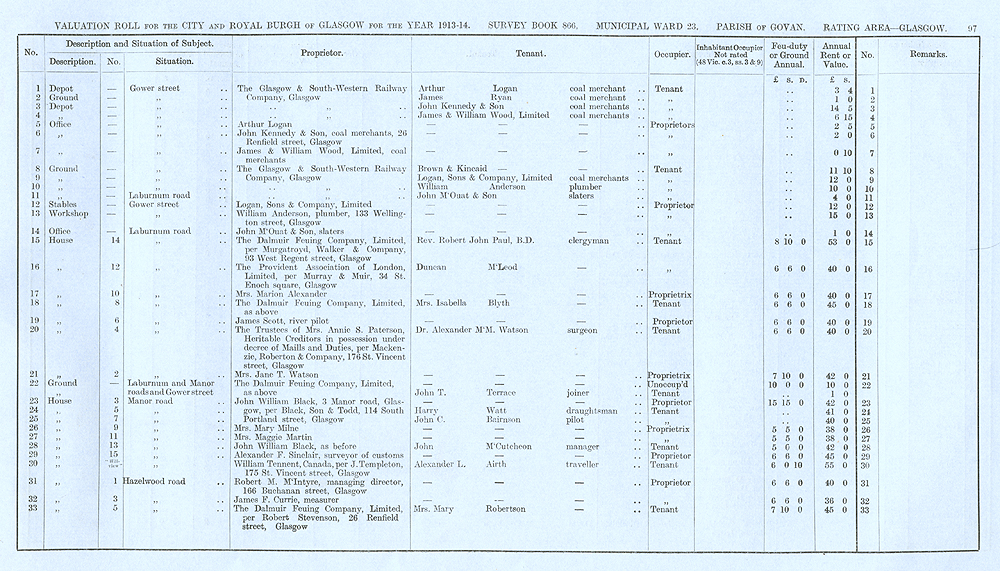 Glasgow Valuation Roll VR 1913-14, Ward 23, p097