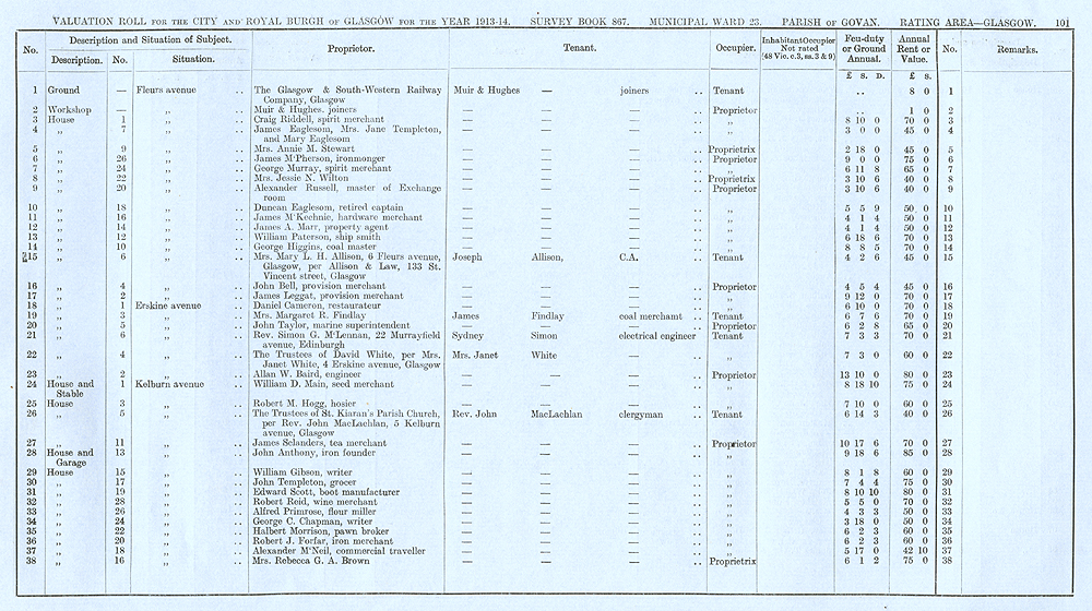 Glasgow Valuation Roll VR 1913-14, Ward 23, p101
