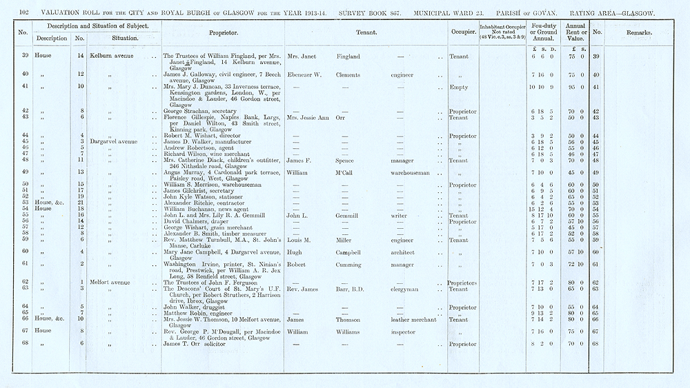 Glasgow Valuation Roll VR 1913-14, Ward 23, p102