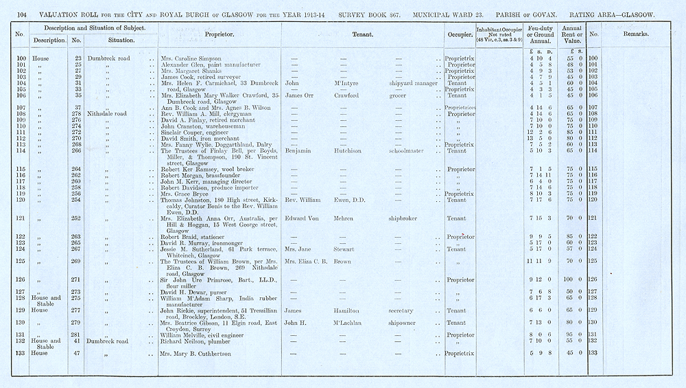 Glasgow Valuation Roll VR 1913-14, Ward 23, p104